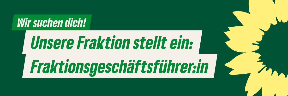 Die Ratsfraktion von BÜNDNIS 90/DIE GRÜNEN in Erftstadt sucht ab sofort eine*n engagierte*n Fraktionsgeschäftsführer*in (durchschnittlich 30 Monatsstunden, Minijob, befristet auf die Wahlperiode des Rates, Verlängerung möglich). Unterstütze unser Team bei der Umsetzung grüner Politik in…